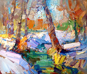 Саме у середині дев’яностих притаманна акварелям художника стриманість та лаконічність, присутня, зокрема, у серії бельгійських етюдів 1995 року, щораз помітніша і в олійних роботах. Натомість кольори поступово ускладнюються, стаючи найважливішою компонентою настроєвих творів живописця („Березень. Відлига", 1996), набуваючи незвичайної звучності, підсиленої контрастами тепло-холодних барв („Над Черемошем", 1996). Іноді й самі мазки перетворюються на виразно-декоративний елемент, надаючи творам дещо гобеленового вигляду („Підсніжники", 1997).